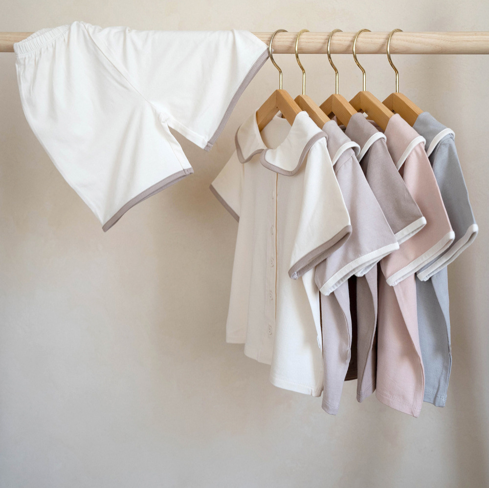 Childrens cardigan short sleeved set Modal fabric baby sleepwear two-piece set