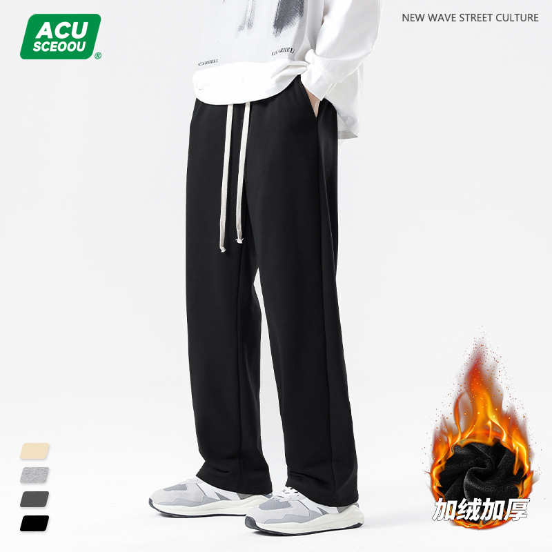 ACU Mens Wear | 2024 Autumn/Winter Plush Thick Sanitary Pants Loose Trendy Brand Straight Leg Casual Pants Versatile Sports Pants Men