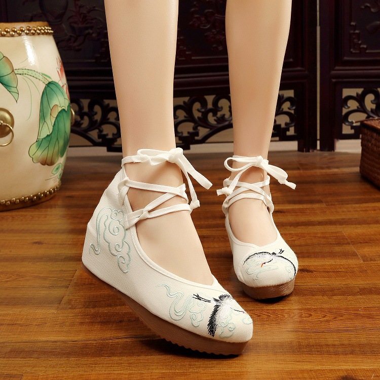 Shoes Women Lace Up Embroidered Shoes With High Slope Style Dancing Shoes Single Cloth Shoes