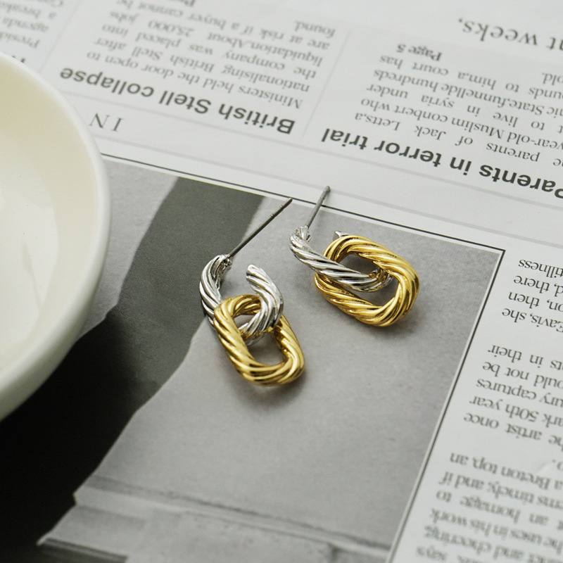 Vintage gold and silver contrast color brass gold-plated temperament earrings high-end sense metal earrings earrings temperament simple womens wholesale