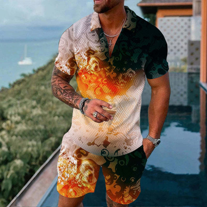 Summer Hawaii 3D Print Polo Shirts Shorts Sets Mens Fashion Oversized Short Sleeve Shirt Pants Set Suits Man Tracksuit Clothing